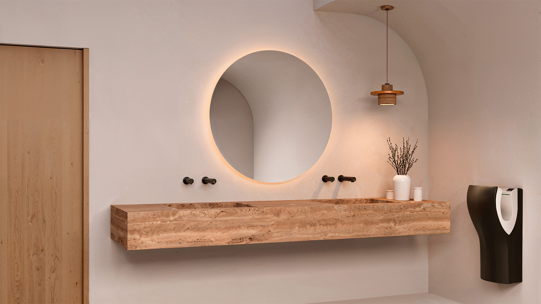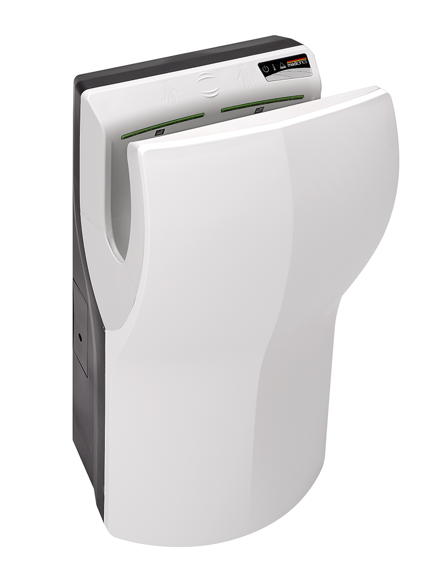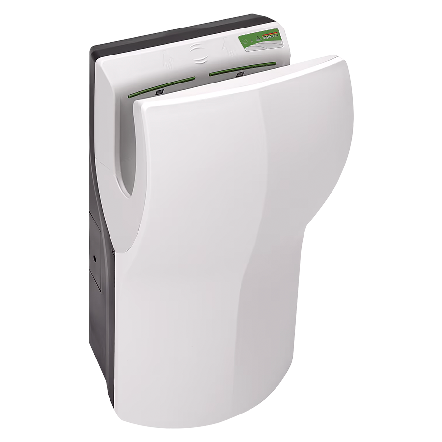 Secador de manos de alta velocidad, con motor sin escobillas (brushless) que no requiere mantenimiento y que garantiza una larga vida útil.