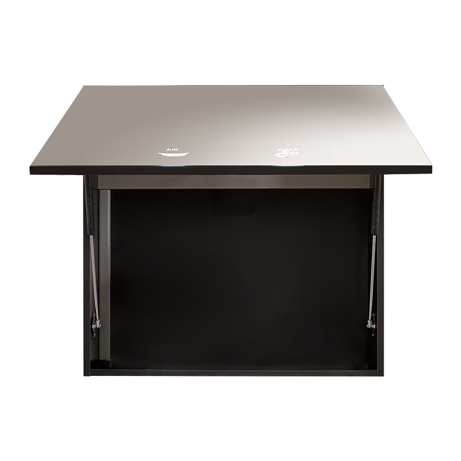 - La puerta suspendida incorpora sistema de apertura asistida y cerradura para mayor seguridad.