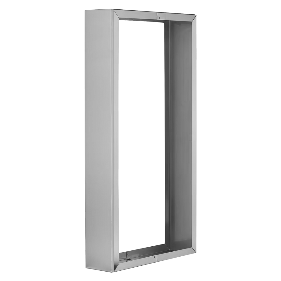 Marco opcional para el montaje el pared, de acero inox AISI 304, de 1,2 mm espesor, acabado satinado.