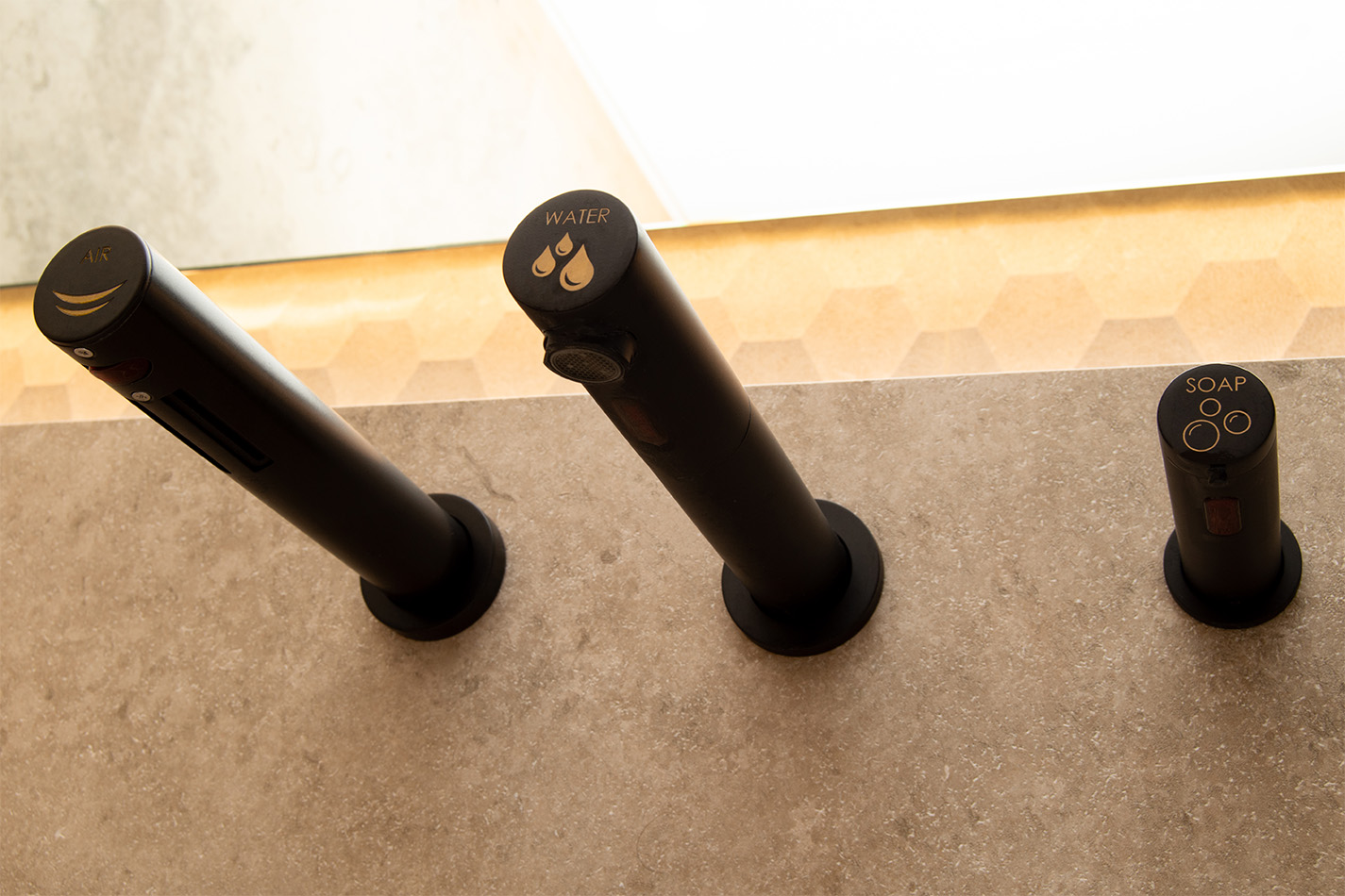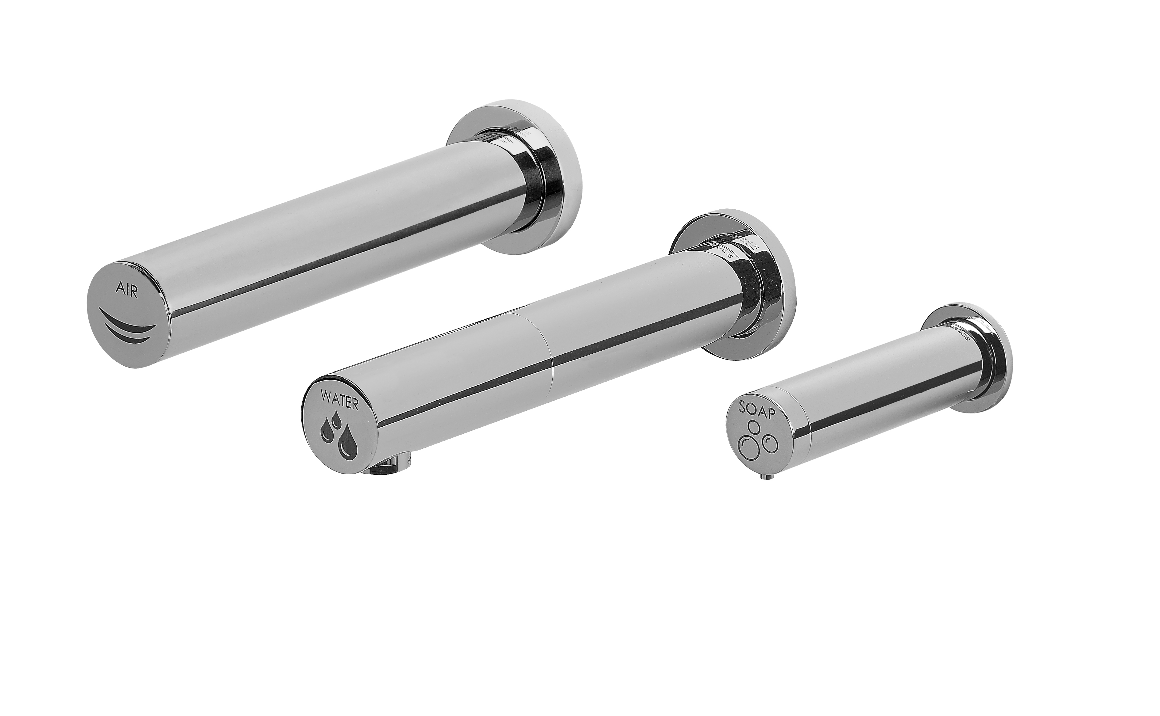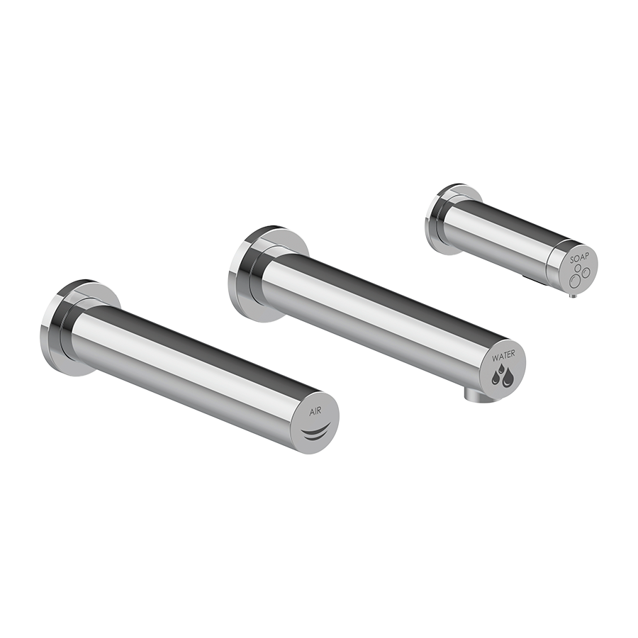 Mediclinics® All-in-One es una unidad integrada de lavado y secado de manos para montar en la pared, compuesta por tres elementos: un secador de manos automático, un grifo automático de agua y un dispensador automático de jabón.